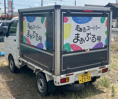 移動販売を行う商品は、弁当・惣菜だけでなく、生活用品も加え、地域の皆様のご希望をお伺いしながら、「走るスーパーまぁぶる号」を運行しています。